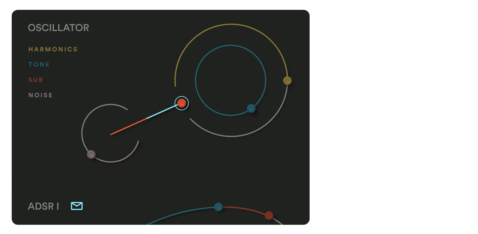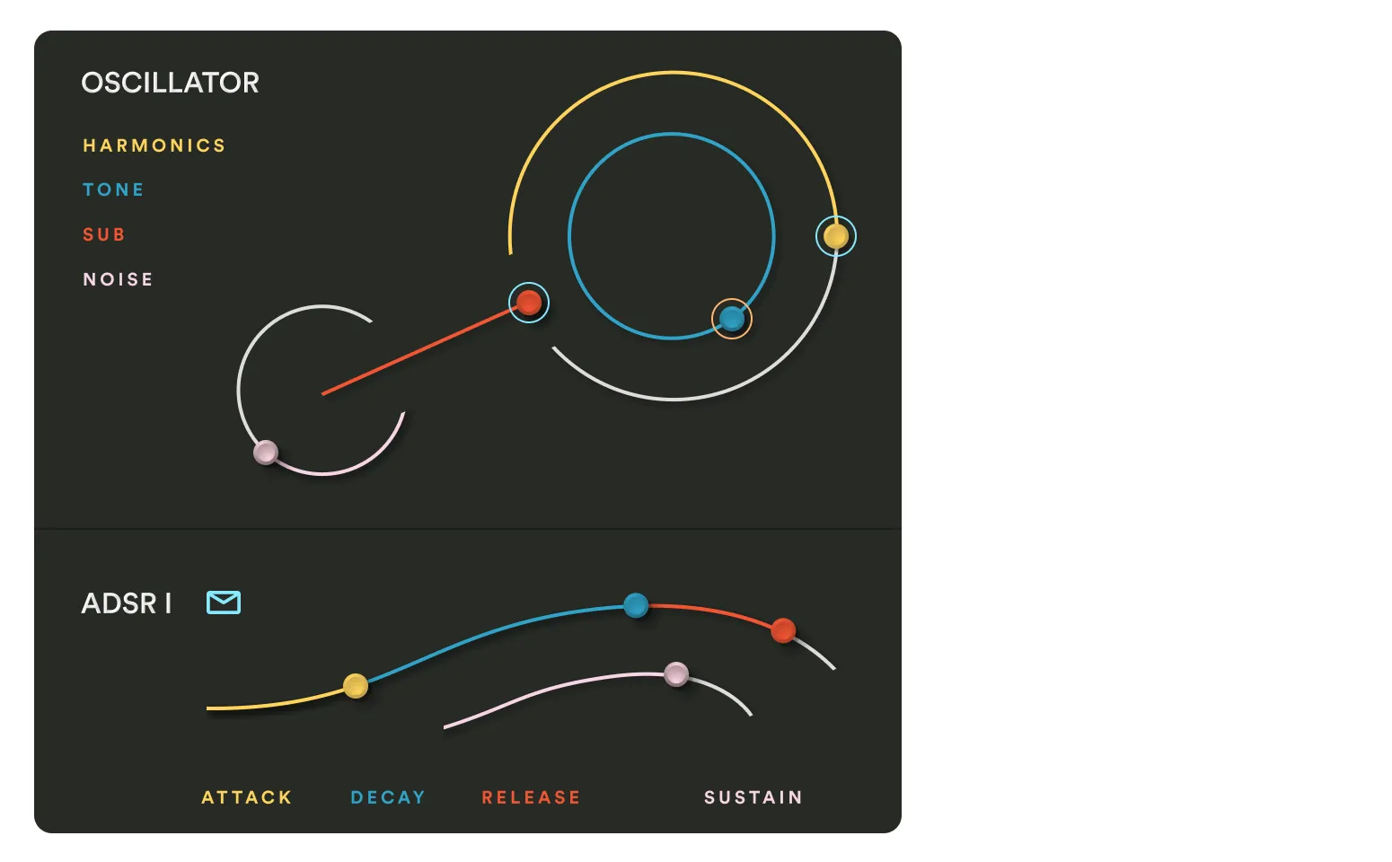 Section titled “Patching”Simply press an Envelope/UFO icon, then drag the parameter you want to affect. How far you drag the parameter affects the range of the modulation.