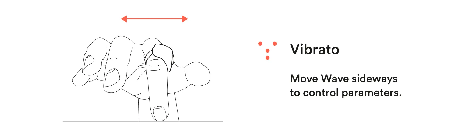 Vibrato lets you add natural vibrato to your playing. Vibrato is the side to side movement of your hand. It uses acceleration so it depends on how fast you move how much Vibrato you add.