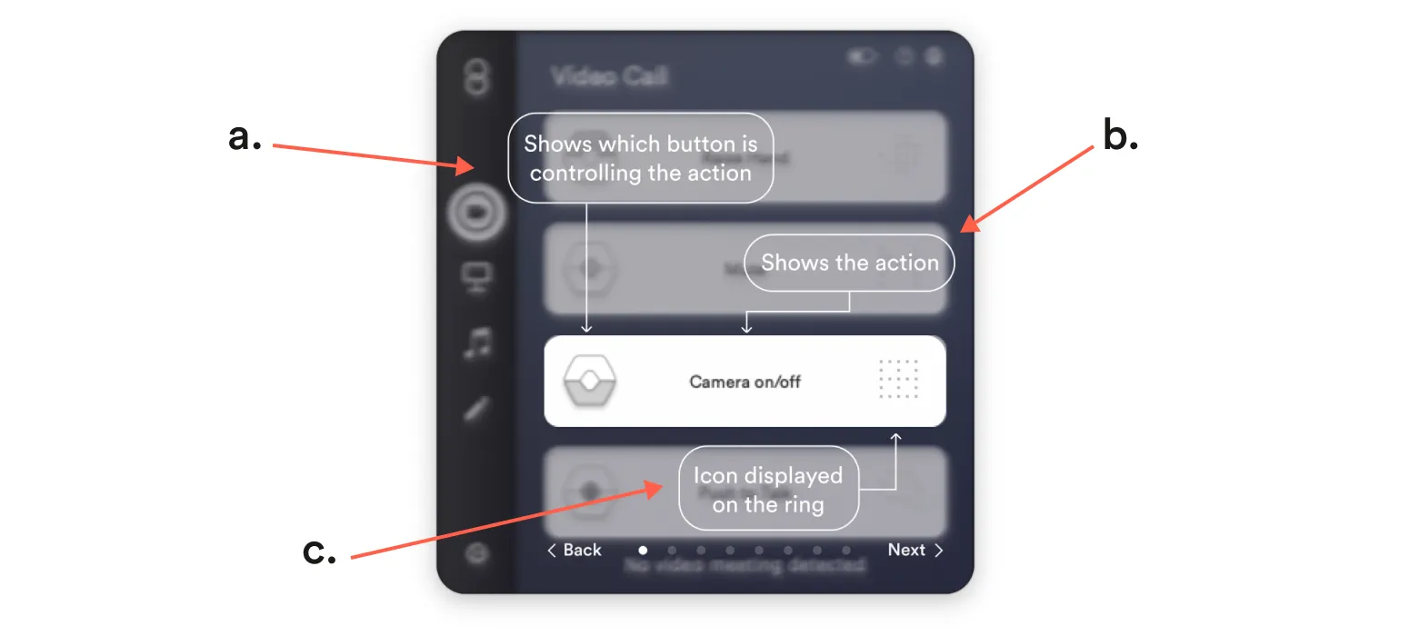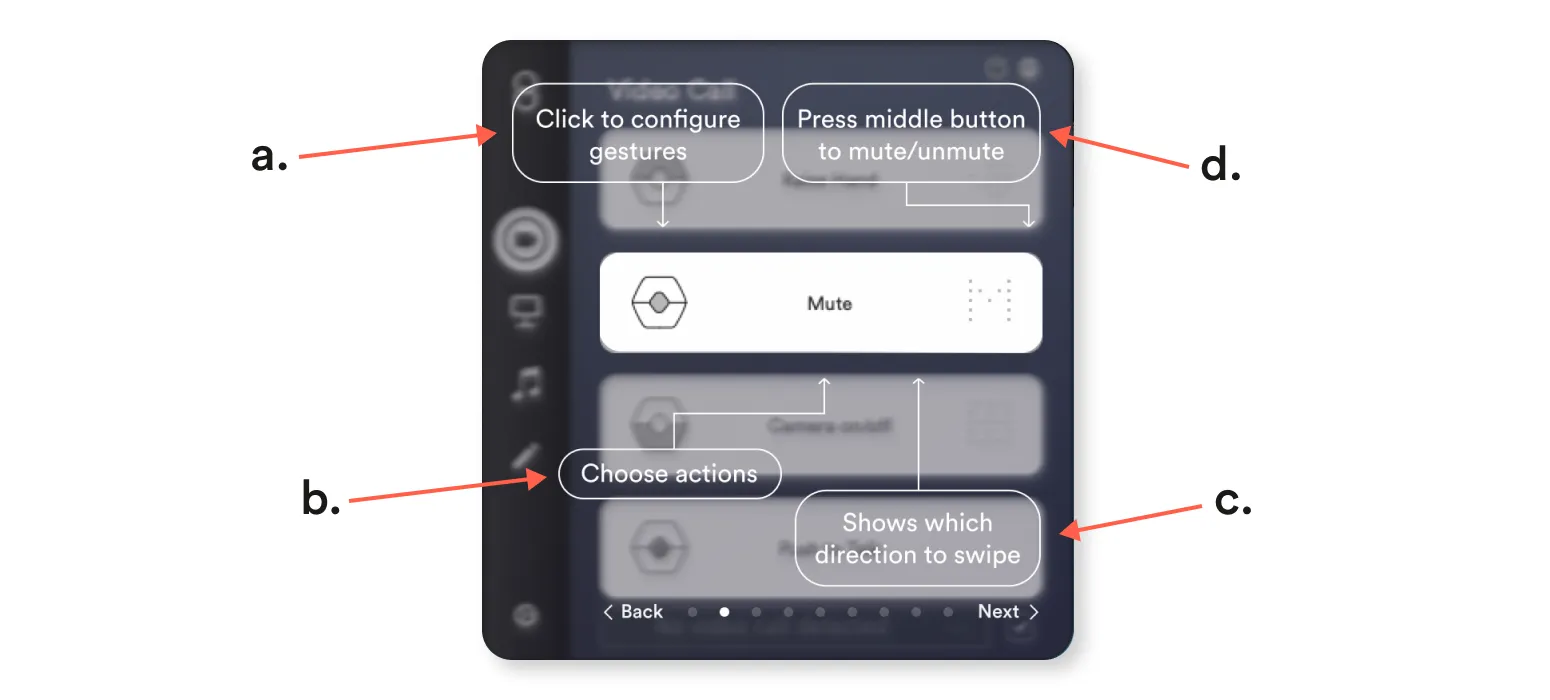 Section titled “Gesture Actions”a. To activate the Swipe Gesture press the icon for the middle button. The icon should change and have arrows on both sides of the ring.