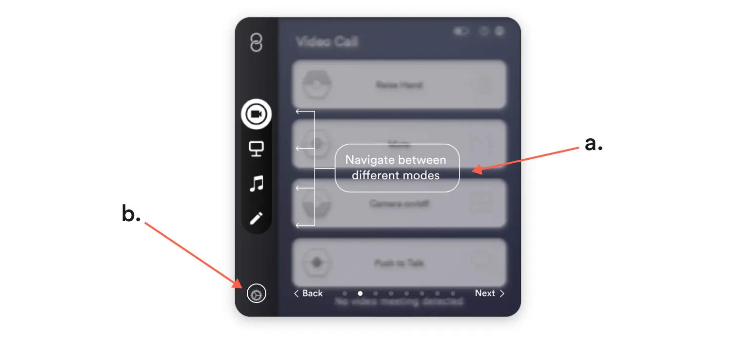 Section titled “Navigating Modes”a. Navigate between the different modes by clicking the icons on the left.