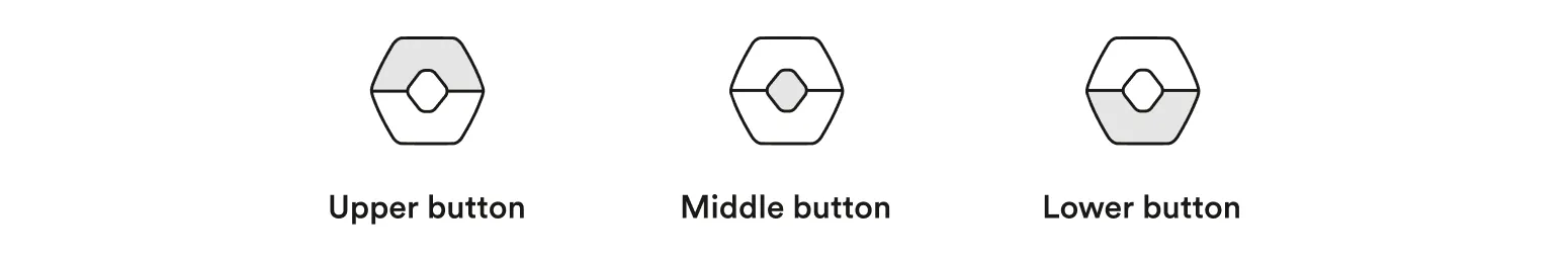Wave has three buttons easily reachable by the thumb. Each button is linked to an action based on the selected mode: Video call, Presentation, Music or Custom.