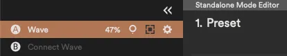When you make changes in the Standalone mode editor, the changes are saved immediately to Wave. The preset configuration is exactly the same as in the main view, the only difference being that the main view presets do not get saved to Wave.