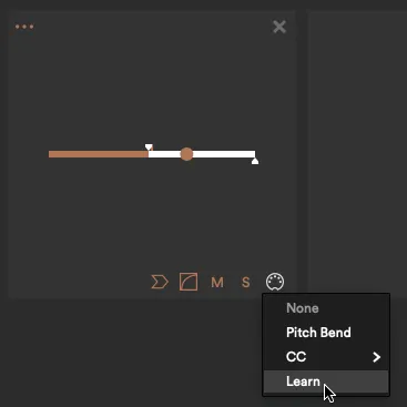 4. Select ‘Learn’. 5. Move a knob on your instrument. The parameter should register. 6. Repeat for other functions.